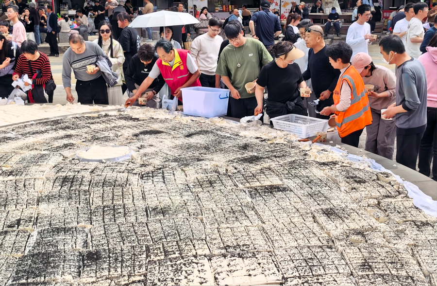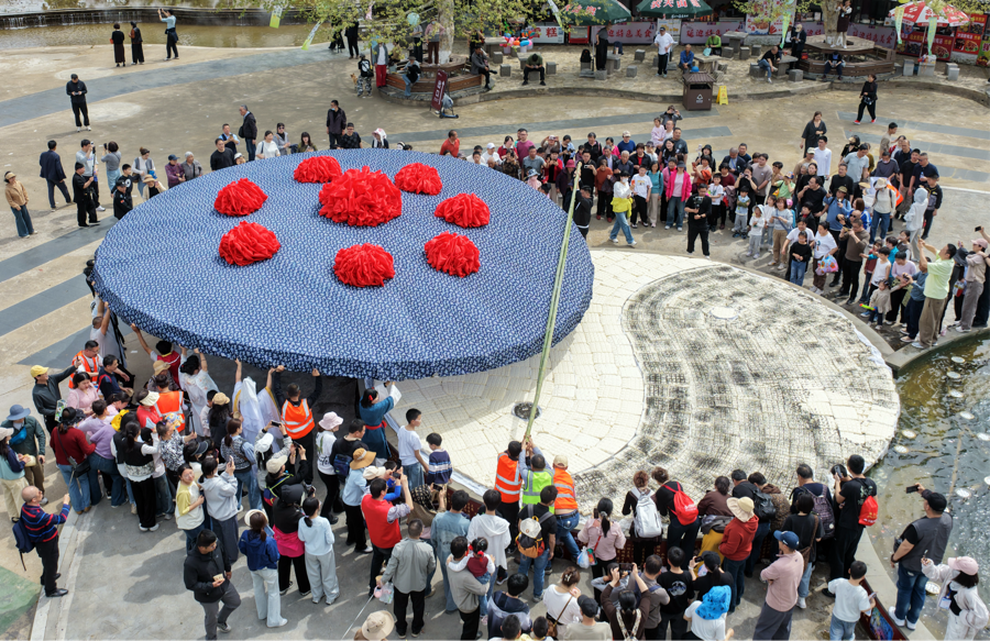 4月6日,在风景如画的宜兴市张公洞风景区,首届张公豆腐节在此开幕,吸引了来自全国各地数千名游客的目光。他们不仅来共同见证这一盛事,更是为了品尝现场展示的那块令人叹为观止的巨型豆腐——其整体直径达到了8.8米。在豆腐的周围,摆满麻油、香菜、虾米、酱油、辣酱等8种佐料,游客可以免费品尝,沉浸式体验了传统美食与民俗文化的独特魅力。
