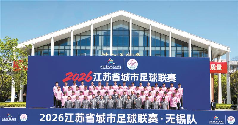 4月7日,2026江苏省城市足球联赛无锡队出征仪式在无锡学院大礼堂举行。无锡队领队挥舞队旗,教练员和队员们激情昂扬,吹响了新赛季的战斗号角。全体将士将践行“我为球队多跑一步”的信念,贯彻“时刻准备上场拼搏”的理念,开启属于他们的“苏超”时刻。