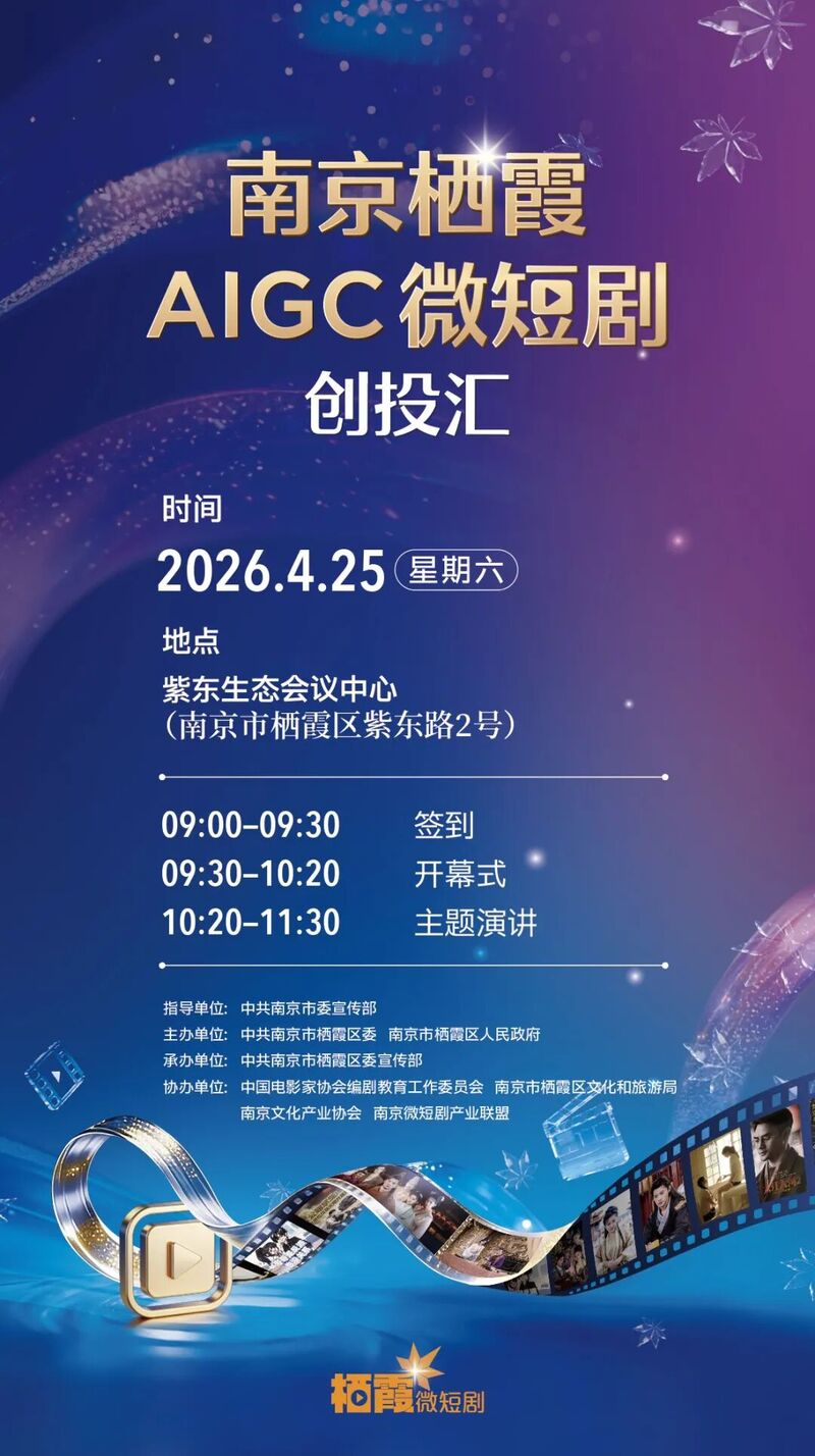 “南京栖霞AIGC微短剧创投汇”报名通道已开放,2026年4月20日17:00截止。这里,是你对接优质资源、突破发展瓶颈、抓住下一个暴富风口的优质选择。(苏栖宣)