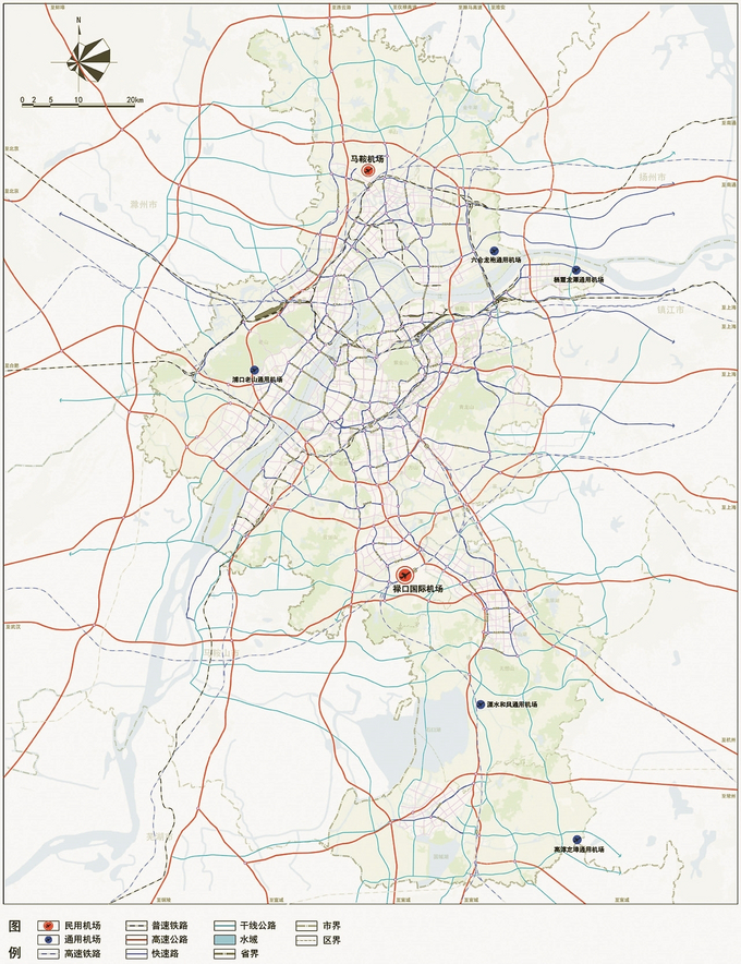 交通规划还构建“一主一辅、五个通用机场”格局,重点提升禄口国际机场的综合交通换乘能力,完善马鞍机场配套功能,同时布局高淳定埠、溧水和凤、栖霞龙潭、浦口老山、六合龙袍5座通用机场。铁路方面,打造“两环十八线”的南京铁路主骨架、“3主站(南京北站、南京南站、南京站)+7辅站”的客运站体系,引入沪渝蓉高铁、宁淮城际这些重要交通线路。