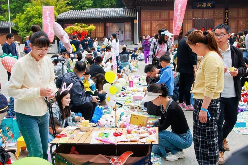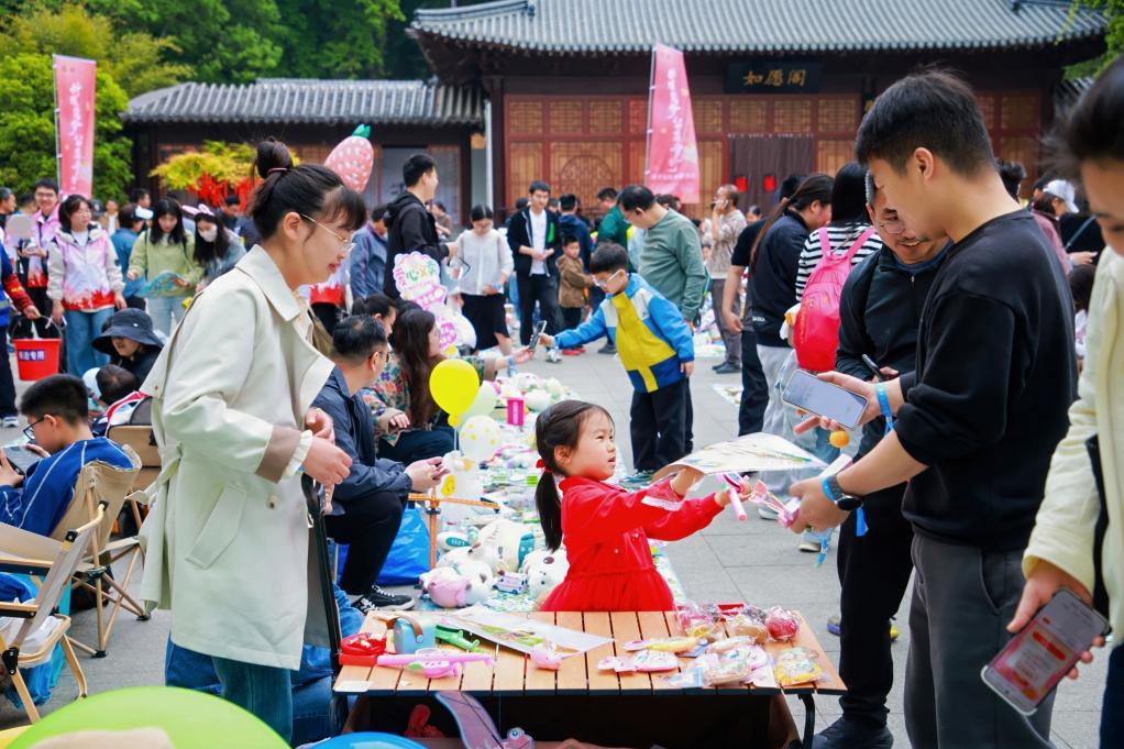 在栖霞山的林荫步道旁、观景平台上,闲置的图书、玩具、手工艺品等物品,被家长和孩子们精心布置成义卖摊位,五彩的摊位与山间的绿意相映成趣,成为栖霞山春日里一道别样的风景线。“这不仅是一场活动,更像一堂‘行走的思政课’”,一位家长表示,孩子们以“小小主理人”的身份参与其中,在山林中完成一次完整的公益体验,在分享中理解责任,在体验中感受创新,这种方式比课堂教学更加生动、更深刻。
