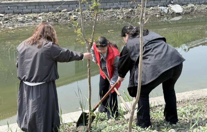议事结束后,全体人员前往11组沟塘、红旗河沿岸开展“同心植绿”实践活动。巾帼志愿者带头示范栽种果树,现场组织妇女代表认领果树,发放认领卡片并签订简易协议,明确浇水、施肥、修剪及环境清理等管护责任。通过“栽种+认领”模式,将妇女议事成果迅速转化为实际行动,引导居民主动参与河岸管护,筑牢河道生态防线,以巾帼力量扮靓邢家社区河岸风景线,实现了基层治理从“议事”到“落地”的闭环推进。(蒋洋)