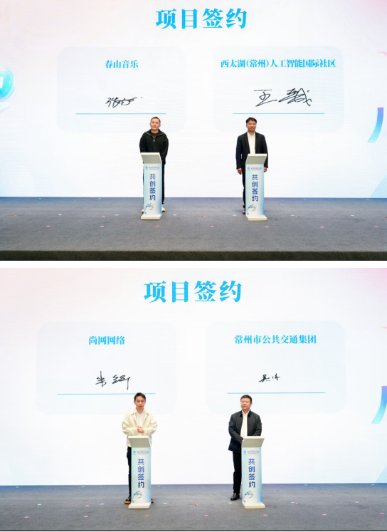 活动中,春山音乐与西太湖(常州)人工智能国际社区,尚网网络与常州市公共交通集团,小云雀、炫佳科技、图灵进化、零克云科技与新华日报大数据中心分别进行签约。